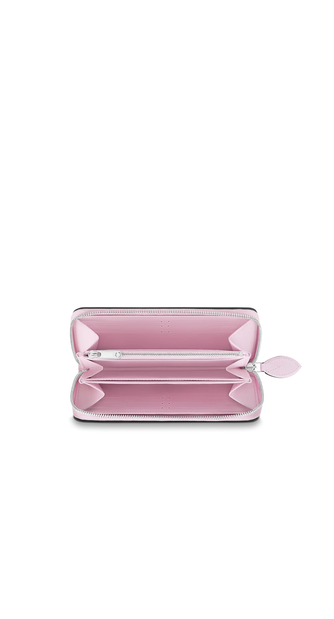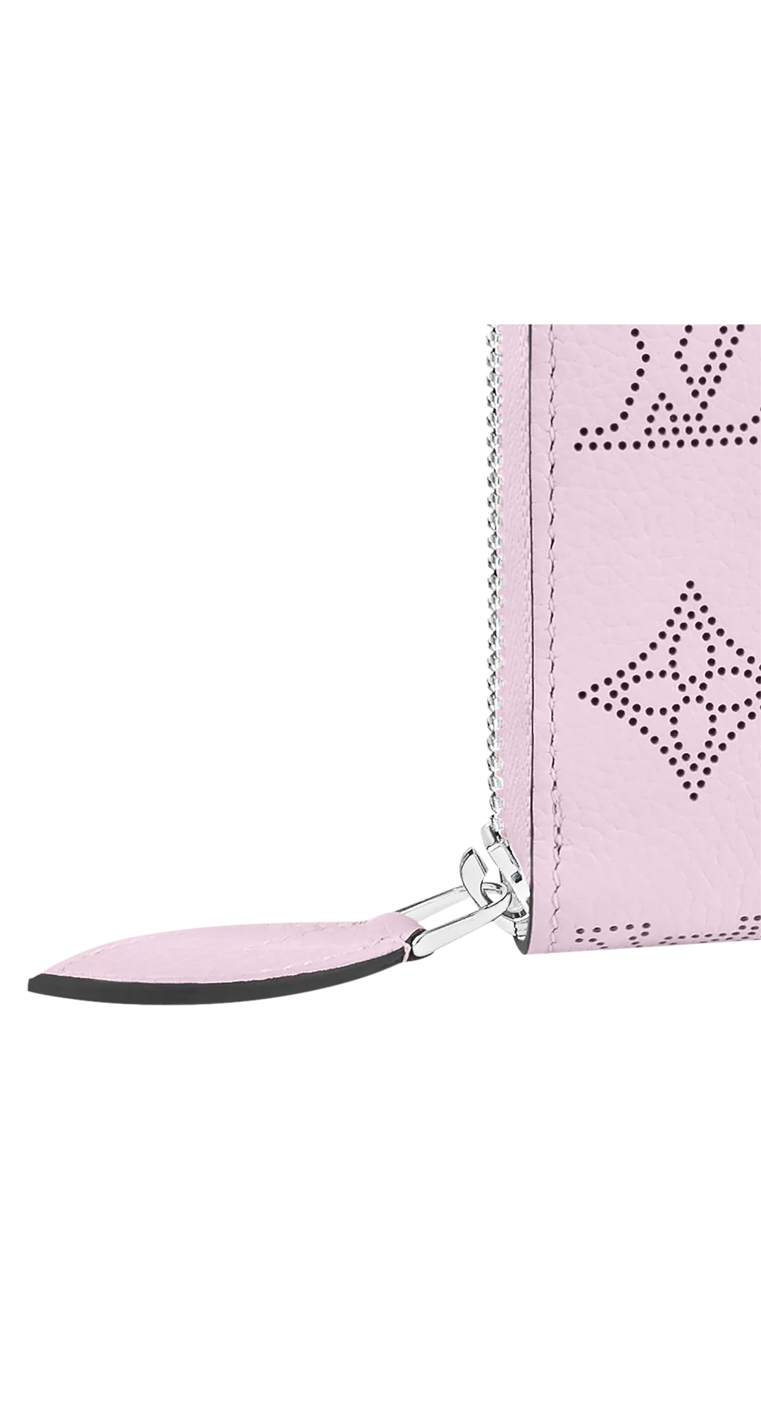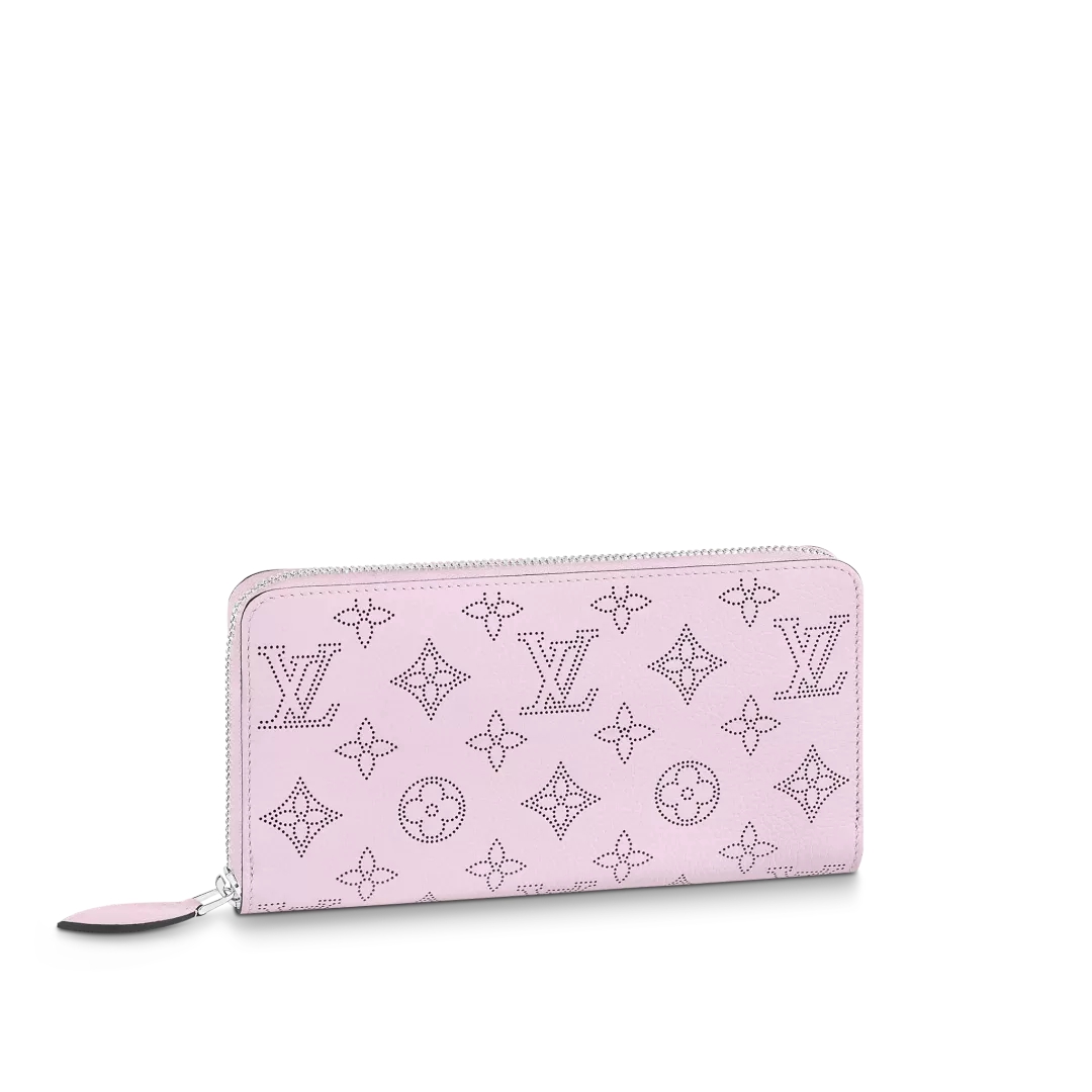 A supple mahina leather “zippy wallet” with a sophisticated monogram pattern perforation. The eponymous round zipper has multiple pockets, compartments and card slots inside for an extremely functional design. It can also be used as a clutch bag.